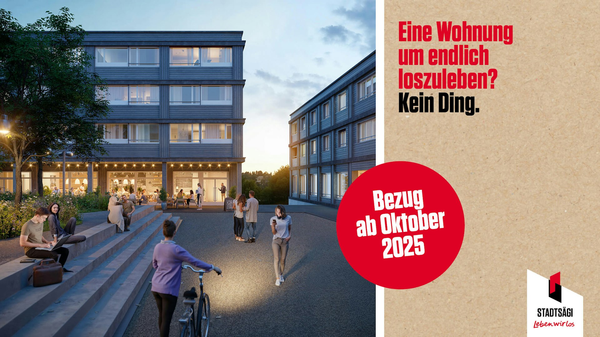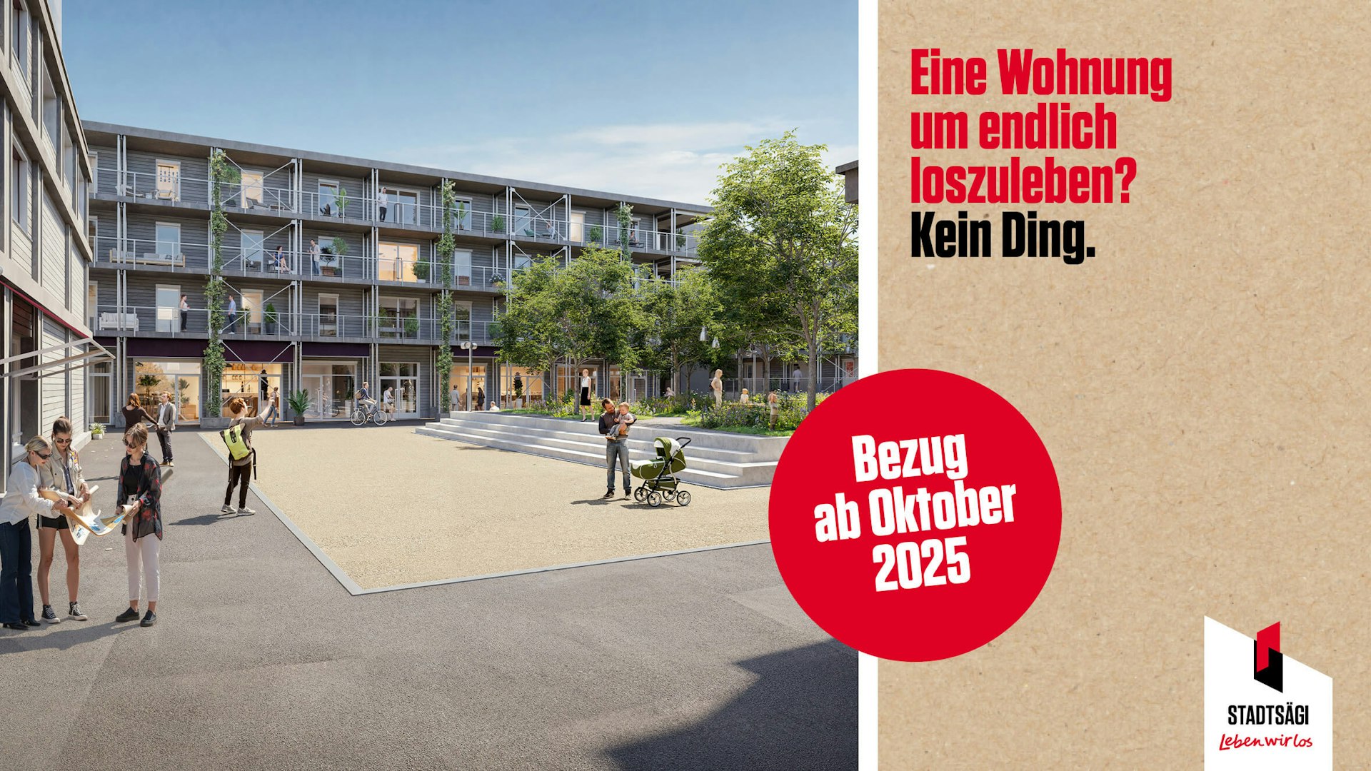 Hast du klare Vorstellungen von deinem Traumzuhause? Möchtest du ebenerdig wohnen mit direktem Zugang zum parkartigen Grünraum oder lieber den Ausblick von oben geniessen? Ob ein kompaktes Studio, eine inspirierende Wohngemeinschaft oder eine grosszügige Familienwohnung – in der Stadtsägi wird Wohnen zum Erlebnis. Egal, welche Wohnform du wählst: Hier treffen durchdachte Architektur, nachhaltige Materialien und ein lebendiges Quartier aufeinander – für ein Zuhause, das in jeder Hinsicht überzeugt.